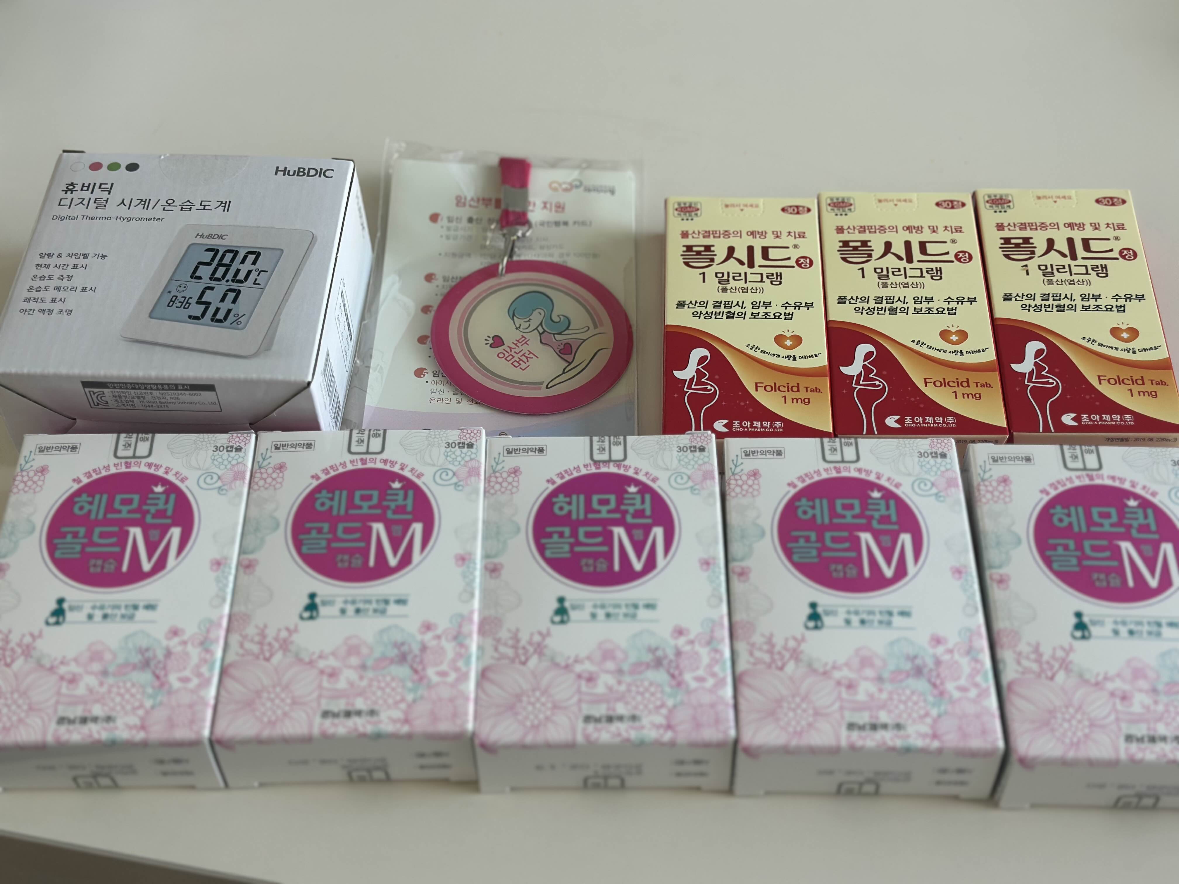 엽산과 철분제, 임산부뱃지, 주차스티커, 온습도계를 받고 KTX/SRT 할인도 등록했다.