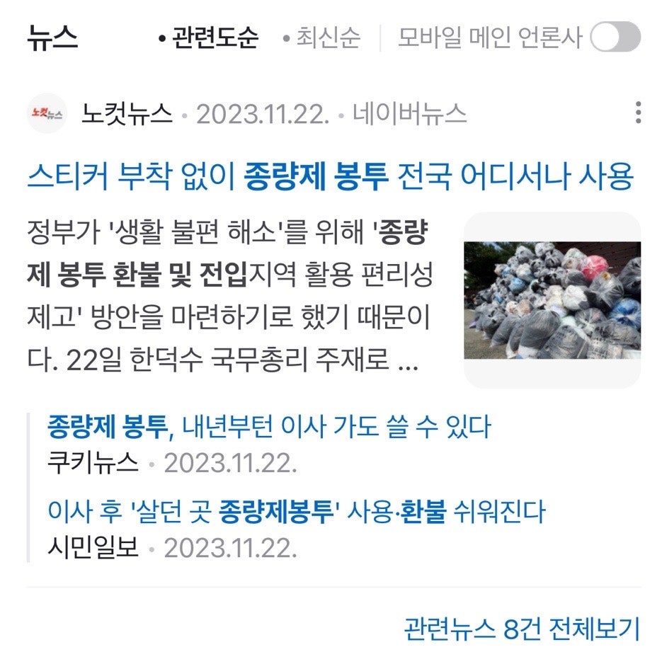 그런데 2024년부터 스티커 부착 없이도 타 지역 종량제 봉투를 전국 어디서나 사용할 수 있도록 정책이 변경되었다고 한다. 듣던 중 반가운 소리!!! 수원으로 이사하고 나서 전에 살던 지역 종량제봉투를 사용하려고 하는데, 남편이 정말 사용해도 되는 거냐며 불안해 해서 확실히 할겸 구청에 문의해보기로 했다.